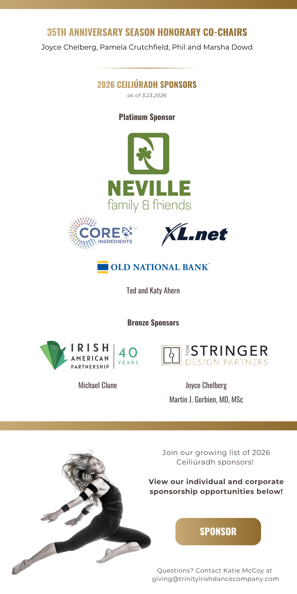 What: A party to celebrate the internationally-renowned Trinity Irish Dance Company as they wrap up a historic 35th Anniversary Season, and launch them towards a bright future! Mingle with the artists, celebrate their recent performances, and support TIDC’s next groundbreaking 35 years.